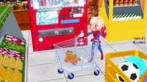 Spiderman Frozen Queen Elsa SpiderGirl Baby Hulk Shopping Cart Finger Family Nursery Rhymes