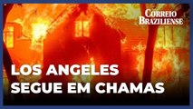 Incêndios florestais alimentados por ventos quentes e secos continuam a se alastrar sem controle pelo sul da Califórnia, nos Estados Unidos, nesta quinta-feira (7)