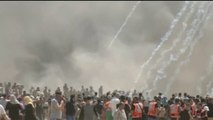 A funeral procession was held in Gaza's Khan Yunis Saturday for Mahmoud al-Masri, 30, who was killed in clashes with Israeli forces Friday.