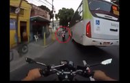 Ce motard va regretter d'avoir doublé ce bus.