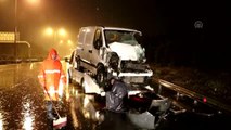 - Olay yerinden görüntülerKARABÜK (AA) - Karabük 'ün Eskipazar ilçesinde seyir halindeki tıra çarpan minibüsün sürücüsü yaralandı.Alınan bilgiye göre, D - 755 karayolunda Karabük istikametine giden Mehmet Yıldırım (35) yönetimindeki 78 SB 828 plakalı minibüs, İsmetpaşa mevkisinde önünde seyreden Burhan Savi idaresindeki 06 NY 786 plakalı tıra çarptı.Kazada yaralanan Yıldırım, araçta sıkıştı.Diğer sürücülerin ihbarıyla olay yerine gelen sağlık ve itfaiye ekiplerinin müdahalesiyle araçtan çıkarılan Yıldırım, Karabük Eğitim ve Araştırma Hastanesi'ne kaldırıldı.Kaza nedeniyle yaklaşık bir saat kapalı kalan karayolu, çalışmalar sonrası yeniden trafiğe açıldı.
