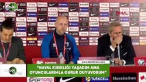 "Saygı çok önemli" Hakemler hakkında yorum yapmak istemediğini de dile getiren Fransız çalıştırıcı, “Alışkın değilim hakemler üzerine konuşmaya. Konuşmak istediğim şeyler var ama konuşmamam herkesin iyiliğine olacak. Altını çizmek istediğim konu var saygı. Saygı çok önemli. Kaybeden de kazanan da olsanız saygı unsurunu atlamamalısınız. Birileri bunu atladılar, saygıyı unuttular. Bugün itibariyle bu beni mutsuz etti” şeklinde konuştu.