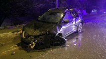 Bir evin duvarına çarparak hurdaya dönen cip