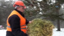 KÜTAHYA - Kütahya'da etkili olan kar yağışı nedeniyle yiyecek bulmakta sıkıntı yaşayan Türkmen Dağı'ndaki geyik ve ceylanlar için doğaya yem bırakıldı.