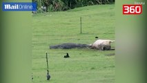 Krokodili gjigand gllaberon lopen si neper filma (360video)