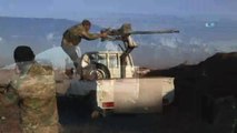 ÖSO askerlerinin silahların başında ve üstüne makineli tüfek monte edilmiş pikaptan ateş edilmesi, Azez'in Afrin'e duğru uzanan havadan görüntüsü