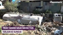 Diduga tak kuat menanjak akibat kelebihan muatan, sebuah truk pengangkut pasir di Depok, Jawa Barat, pagi tadi tercebur ke kali.