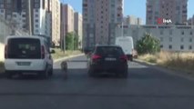 KÖPEĞİNİ BOYNUNA BAĞLADIĞI İPLE KOŞTURDU