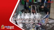 Banjir yang merendam permukiman warga di Kampung Melayu, Jakarta Timur, berangsur surut. Puluhan warga terlihat membersihkan rumah mereka dari bekas banjir.
