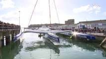 Le trimaran Banque Populaire IX, qui appartient à la catégorie Ultime, a été sorti de l’eau, mardi après-midi, puis rangé dans son nouveau hangar, à Lorient La Base, près de la Cité de la voile. Il va subir des opérations d’entretien pendant un mois. Le bateau, skippé par Armel Le Cleac'h, vient de faire un aller-retour d'essai jusqu'à Pointe-à-Pitre (Guadeloupe).