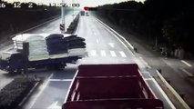 Un motard qui roulait en Californie a eu une chance extraordinaire malgré son crash. Alors que sa moto s'est subitement mise à guidonner, il a fini par chuter et passer sous un semi remorque tout en glissant! Au final il s'en sortira avec quelques égratignures au genoux et hanches.