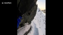 Suivez cet alpiniste sur la crête d'une montagne... Vertigineux!