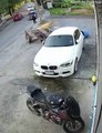 LiveLeak - Motorcyclist Plows Into A Car, Motorcyclist Ends Up Sitting On The Cars Trunk
