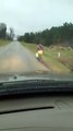 Un papa punit son fils en l'obligeant à aller à l'école en courant