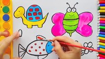 How to Draw Turtle, Bee and Fish for Kids | Animals Coloring