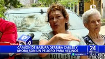 Cables descolgados ponen en peligro a vecinos y transeúntes en Comas