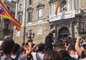 This videos show protesters singing the Catalan national anthem and holding banners, demanding the release of arrested Catalan leaders.