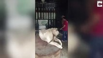 Ce touriste voulait une photo avec un lion blanc et va avoir la peur de sa vie