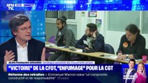 Au sortir d'une réunion entre les syndicats, la direction de la SNCF et la ministre des Transports Elisabeth Borne ce vendredi, le représentant de Sud a indiqué qu'il comptait proposer à ses collègues de l'intersyndicale (CGT, FO et CFDT) de "durcir le mouvement". Pour en parler: Erik Meyer, secrétaire fédéral Sud-Rail. Et Pierre Kupferman, rédacteur en chef de BFMbusiness.com. - BFM Story, du vendredi 6 avril 2018, présenté par Thomas Misrachi, sur BFMTV.