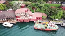 İstanbul Boğazı'nda Malta bayraklı "Vitaspirit" adlı geminin çarptığı Hekimbaşı Salih Efendi Yalısı'nda hasar incelemesi yapılıyor.