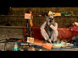 Naga Sadhu smoking chillum, generating clouds of dope. Meanwhile, his fairly extensive penis is displayed for the world to see, and he puts jewellery on to it for beautification. Are those fake pearls?