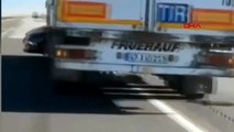 Tır sürücüsü çarptığı aracı metrelerce önünde sürükledi