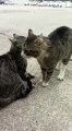 Des chiens séparent deux chats qui se battent !
