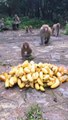 Forest Monkey Family They Are So Hungry, In The Jungle No More Food For Them