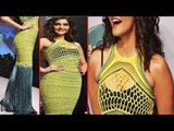 Hot Sonam Kapoor In Netted Yellow Dress Exposing Black Bra