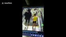 A toddler got his hand stuck in an escalator in a Chinese mall.
