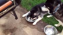 Ce chien s'amuse à faire des bulles d'eau dans sa gamelle !