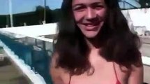 You cannot push someone into the swimming pool from that far away, however, this guy learned t later when he also fell in with the girl he was pushing.
