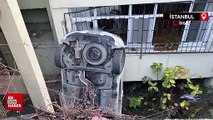 Beyoğlu'nda fren yerine gaza basan kadın sürücünün kullandığı otomobil, kontrolden çıkarak apartman boşluğuna uçtu.