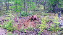Brown bear hunting rodents in Siberia