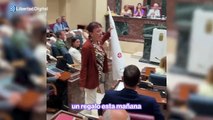 Una diputada de Podemos regala un capirote a uno de Vox para su próxima "cacería"