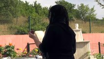 Edirne Yenişehir Mezarlığı'na gelen baba Süleyman ve anne Hafize Çetin, şehit kızlarının kabrini temizledi ve dua etti.