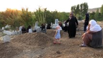 Bayramı kızlarının mezarı başında karşılayan şehit ailesi, gözyaşlarını tutamadı.