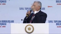 Başbakan Binali Yıldırım, tezahüratı yapmaya çalışırken “Kaf sin kaf sin sin kaf kaf” deyince tezahüratı sürdürmedi.