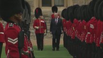 They were filmed marching outside the castle before being ordered to come to a halt.