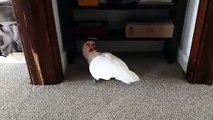 Il teste la réaction de son cacatoès en disparaissant derrière un drap