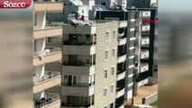 Anahtarı evde unutunca çocuğunu çatıdan balkona sarkıttı