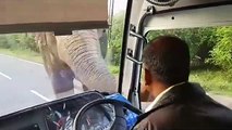 Sri Lanka : Un éléphant gourmand arrache de la nourriture depuis un bus !