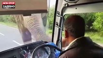 Un éléphant brise la vitre d'un bus pour voler des bananes !