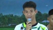 Tayland'daki su dolu mağaradan kurtarılan 12 çocuk ve antrenörleri, hastaneden taburcu edildikten sonra basın toplantısı düzenledi.