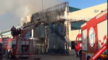 Yangın nedeniyle fabrikanın çatısı çökerken, zaman zamanda patlamalar meydana geldi.