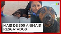Protetora dos animais resgata cachorro que estava preso em rede no meio da enchente