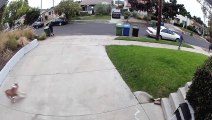 Ce maitre est prêt à tout pour retenir son chien qui s'échappe... placage énorme