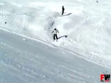 'Guy bumps into and knocks down inexperienced skier while sliding downhill '