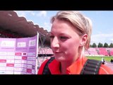 Anna Rüh (GER) after winning Discus Throw, Tampere 2013 (in German)