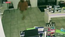 Telefon çalmaya çalışan hırsızın üzerine reklam panosu düştü